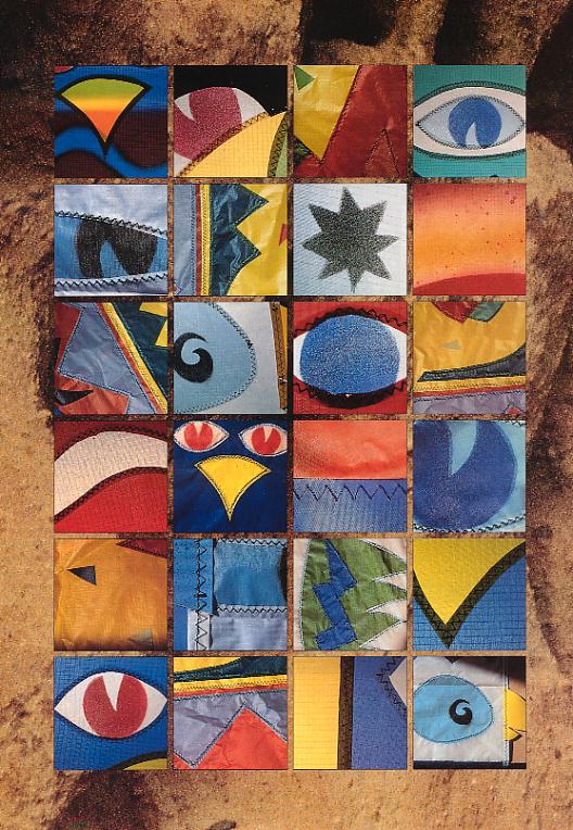 Dies sind Details von Segelmotiven von Drachen des US-Amerikaners Chris Dunlop.Die Motive erinnern ein wenig an die Malerei der Indianer vom Stamm der Shoshonen, die im heutigen Gebiet von Utah lebten, wo auch diese Fotos enstanden.