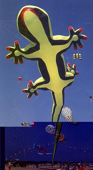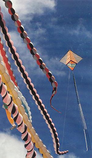 Die Entwicklung der Luftfahrt wäre ohne Drachen undenkbar, und bei vielen Völkern Asiens waren (und sind) Drachen fester Bestandteil der Kultur und des täglichen Lebens. Zum Beispiel die traditionellen Kampfdrachen in Indien, Pakistan und Afghanistan. In Japan bauen konkurrierende Dorfgemeinschaften Riesendrachen (20 und mehr Meter hoch!) und tragen damit Wettkämpfe aus. Aber Drachen sind für viele Menschen auch Kunstobjekte und der blaue Himmel eine riesige Leinwand. Das rechte Foto zeigt einen Drachen des Bremers Peter Malinski, der leider schon 1993 mit 47 Jahren einem Krebsleiden erlag. Links sehen Sie eine Konstruktion des Neuseeländers Peter Lynn, der zu den weltweit kreativsten Drachenbauern gehört. Neugierig geworden? Mehr über die phantastische Welt der Drachen erfahren Sie hier. Alle Fotos auf diesen Seiten, soweit nicht anders vermerkt: (C) Axel Voss.
